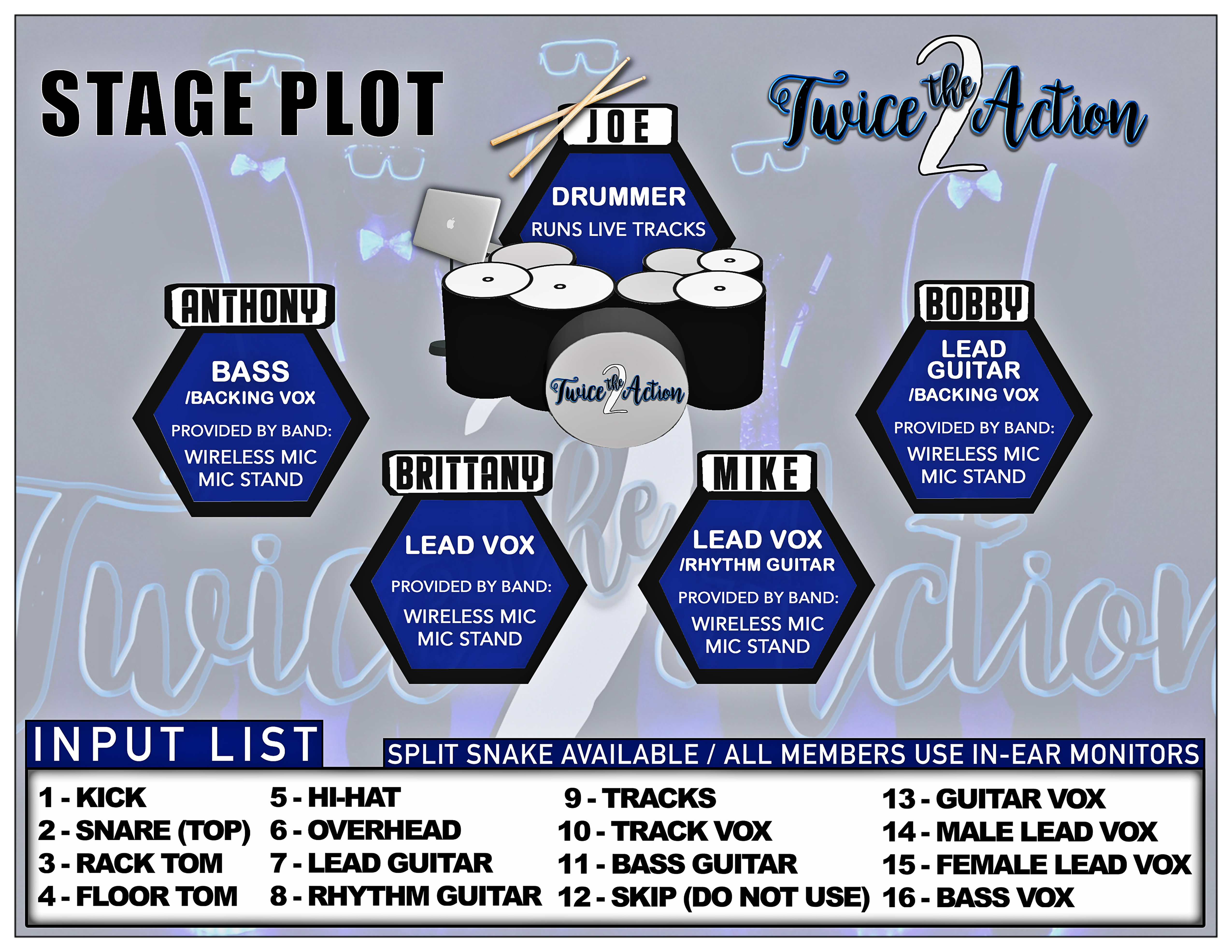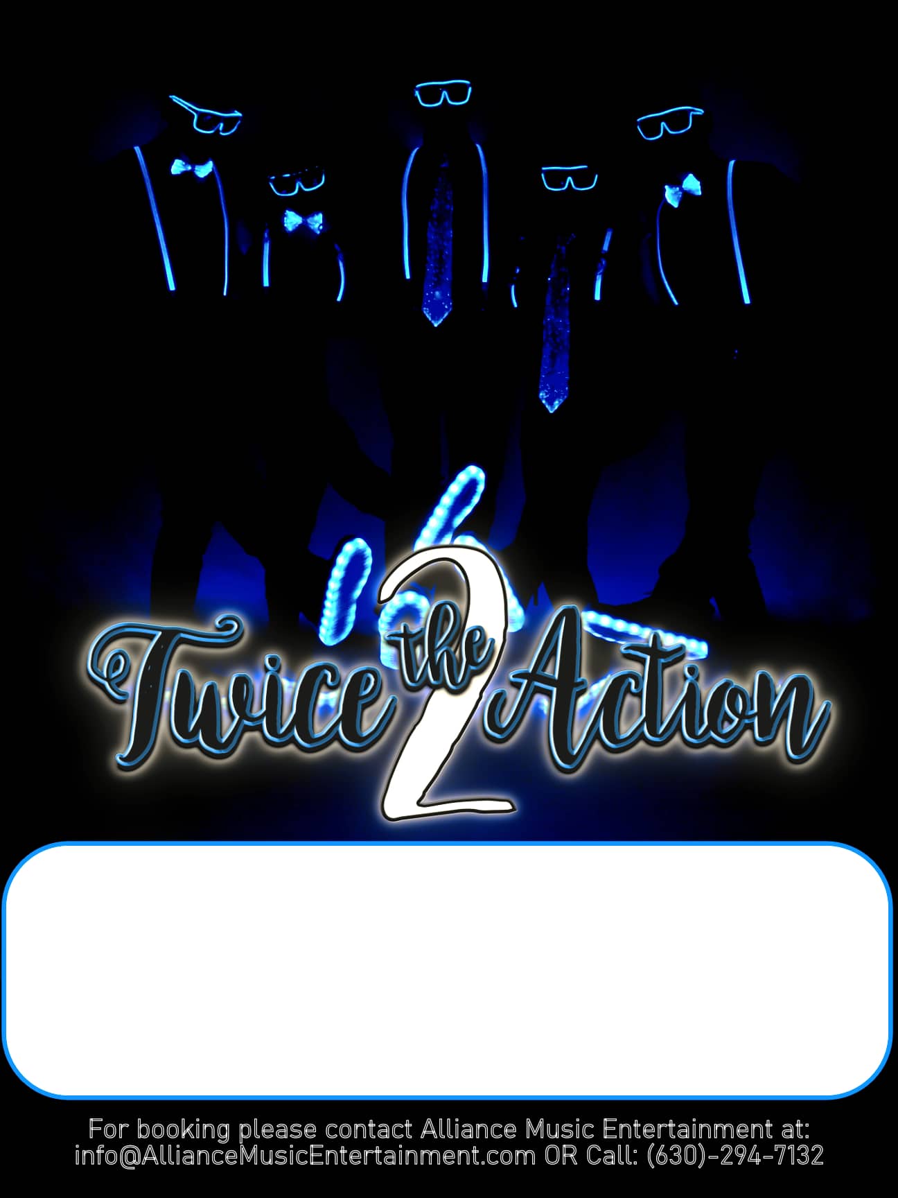 The name says it all! TTA brings the party everywhere they go - MORE dancing, MORE singing, and a MORE memorable event - guaranteed! TTA is a sensational five-piece band with two, yes TWO, lead singers. With male and female lead vocals, there isn’t a genre of music this band can't perform. Twice The Action is loaded with talented musicians from some of the top cover bands in the Midwest. With their contagious energy, sequenced dance moves, and their hit-song-after-hit-song set-list, you will never want to leave the dance floor. With over 20+ years of combined experience in the industry, TTA understands the importance of every single event. Our clients and our audience are always our number one priority, and we take pride in being the hand-picked entertainment for each and every occasion.